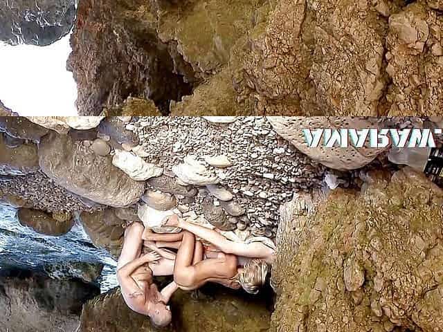 Threesome for Tamara Val as she gets double penetrated in a cave