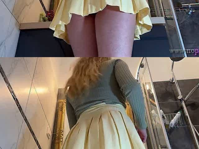 Hot new sexy blonde wife changes her panties in the bathroom