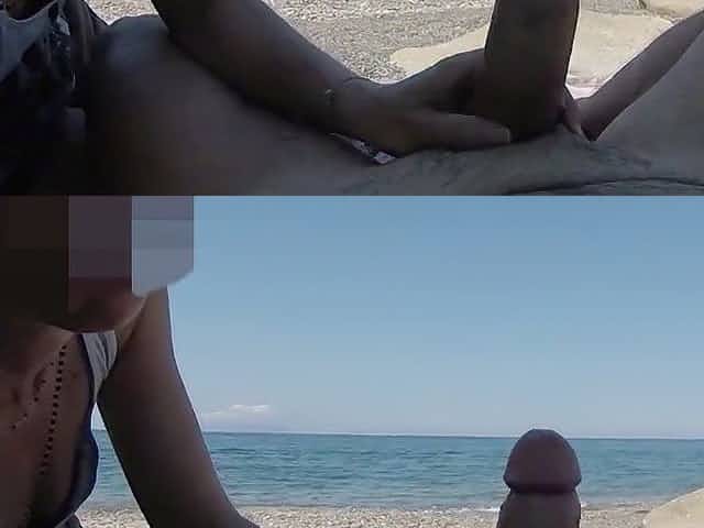 Beach cumshot, beach, naturist