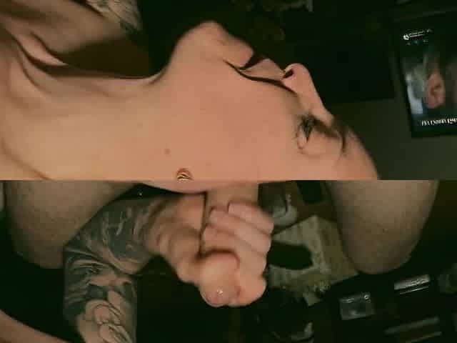 superbe brune tatouée fait une pipe magique