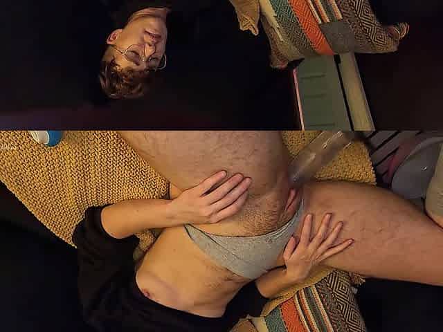 ftm femboy rubs boycunt with dildo & cums twice