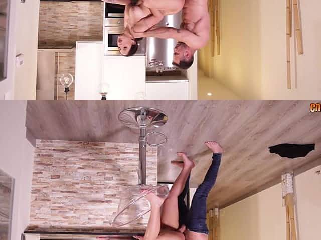 Young babe shows off in scenes of kitchen sex with a hot hunk