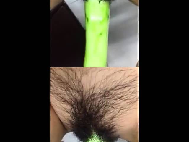 Horney Chinese student shape cucumber as cock and fuck herse