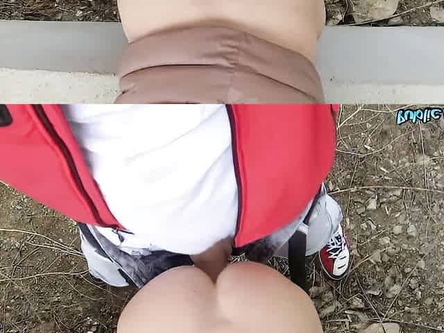 Young student screwing in outdoor POV for quick buck