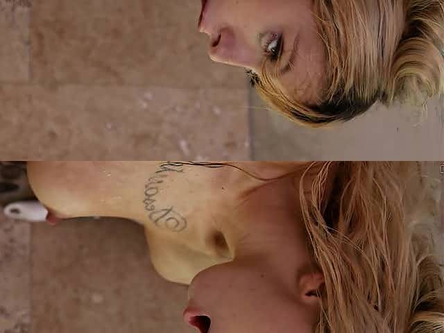 Blonde girl with Athletic Body gets facial after doggy-styled sex
