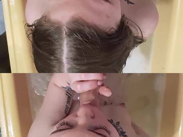 Japanese wife grabs her man's dong and give it a stunning blowjob as they take a bath