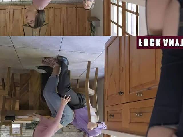 Stepbrother fucks her petite teen stepsister in the kitchen
