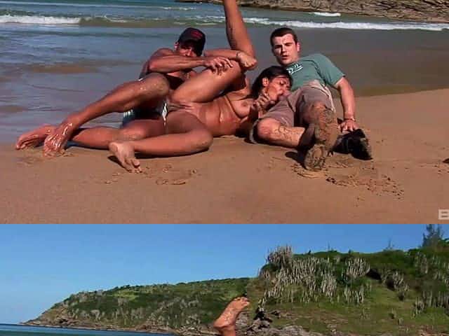 Busty wife Babalu gets double penetrated by strangers on the beach