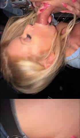 Perv Blonde sucks taxi driver's big cock in a car
