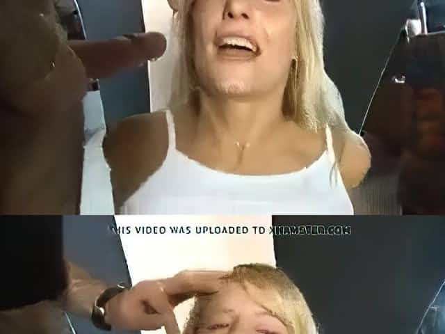 Cuckold husband watching his blonde wife in an interracial gangbang