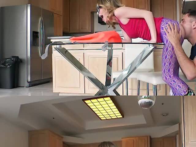 Teen gf caught her bf fucking her stepmom in the kitchen