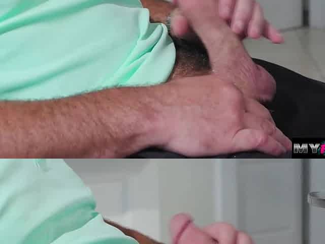 My stepdaughter gives me a foot job and fucks her