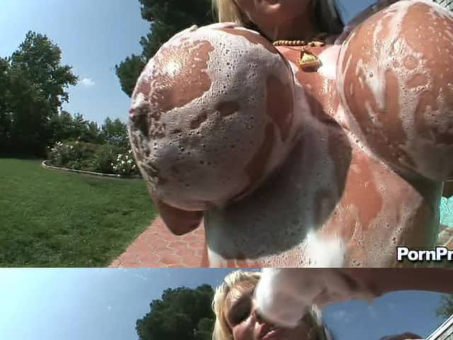 Busty mommy with fair hair Haley Cummings fucks in the garden