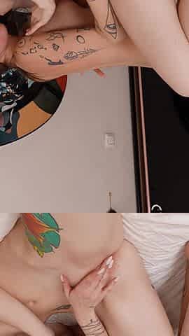 Hot porn gal giving milky blowjob, giant man meat creampie!