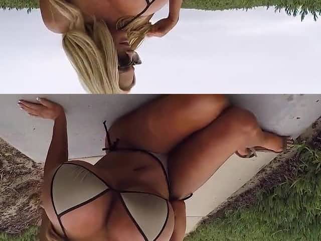 Gold Ebony Bikini 1080 stretching over humongous tits