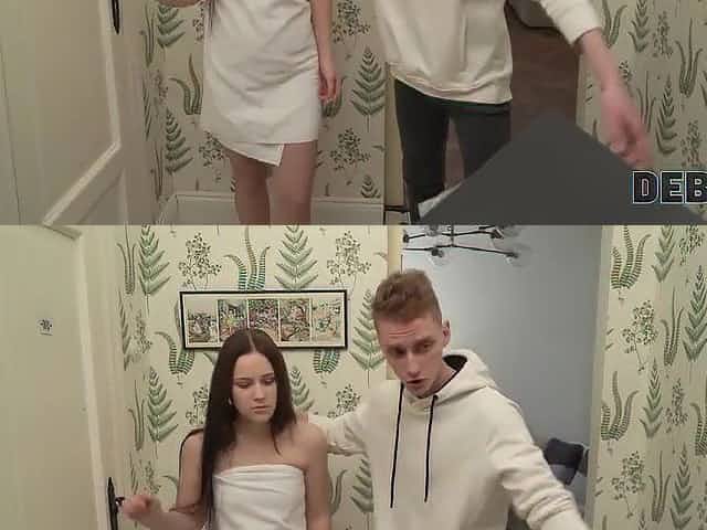 DEBT4k. La Ragazza Dai Capelli Lunghi Fa Tutto Ciò Che L'agente Di Prestito Vuole Da Qui