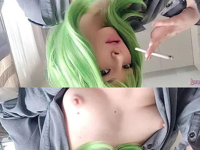 Cute Green Hair Egirl smokin' for u (ask me for full vid)