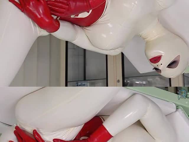 Full latex fantasy and kinky solo display with a busty woman