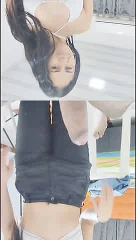Sexy Latina Having Fun Trying on Clothes and Cutting Them.