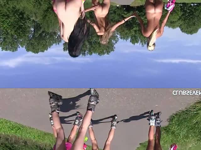Nude roller girls are having crazy outdoor sex fun right on the lawn