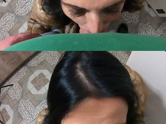 Blond milf blow job in fox fur coat