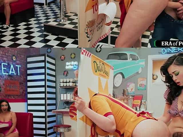 Busty big cock futa waitress fucked by big tit futanari babe