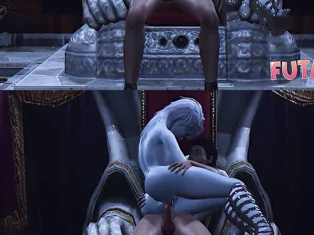 Dark Futanari Elf fucks High Elf with her big cock