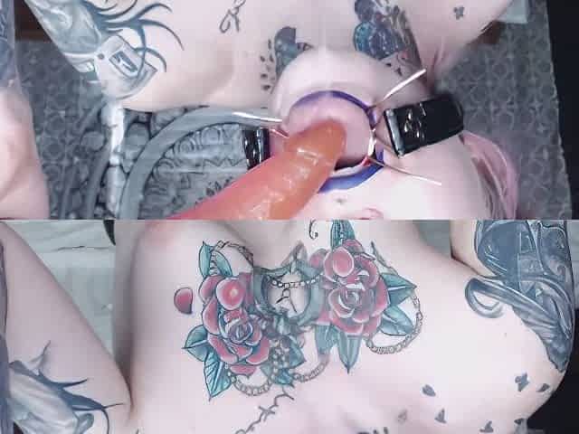 Tattooed Camgirl Fucking Her Throat While Spider Gagged