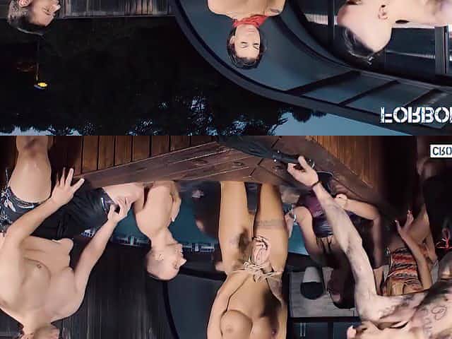 Gagged Spanish Brunette Susy Gala Rides Hard Cock In Group BDSM Sex in the Pool