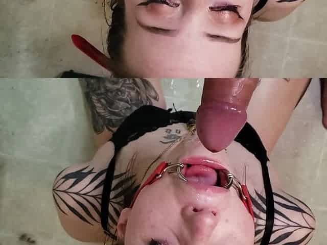 "Gagging tattooed babe blows and titfucks cock in POV"