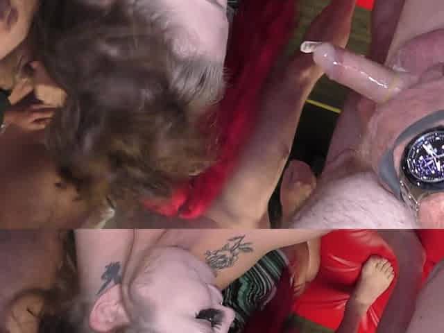 Blonde and brunette babes loves hardcore bukkake gangbang