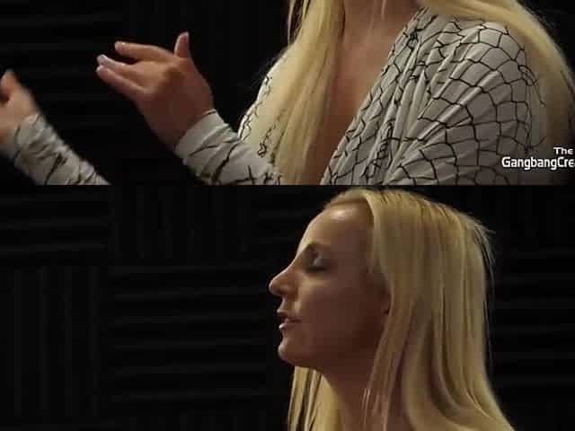 Sexy blonde teen blowjob and gangbanged then creampied