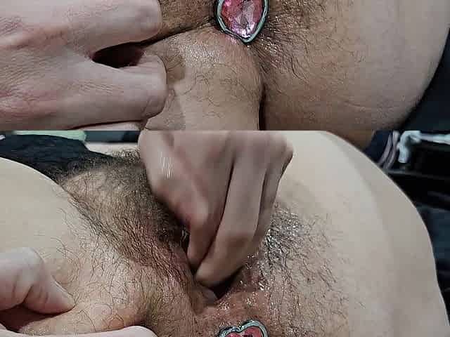 Moist anal training - Cute anal gape! A lot of prostate milk and spit all over my butthole.