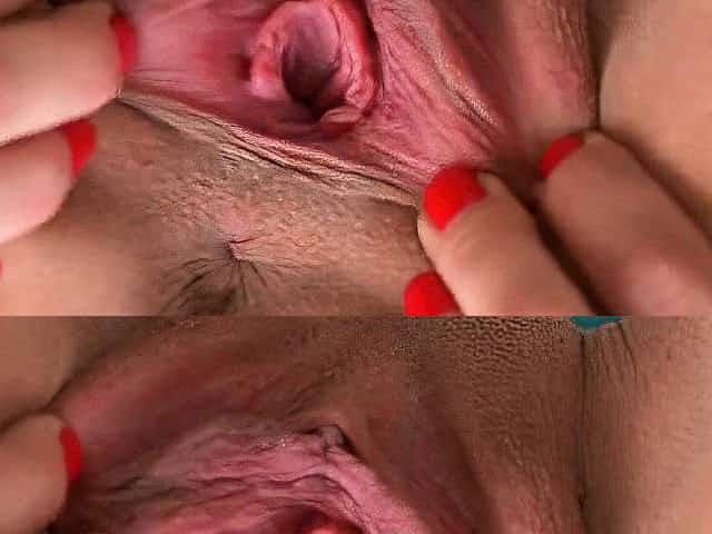 Pretty nympho is gaping tight vagina in close-up and getting