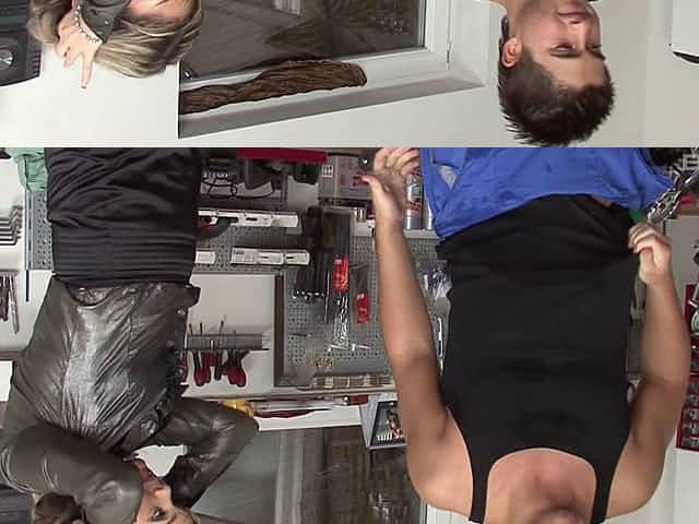 2 amatrices MILFS au garage : exhib et trio avc le mecano
