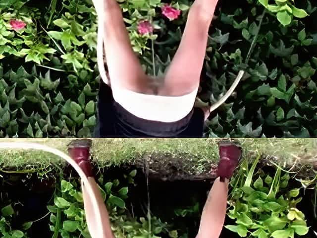 Surprised orgasm while caught masturbating in garden