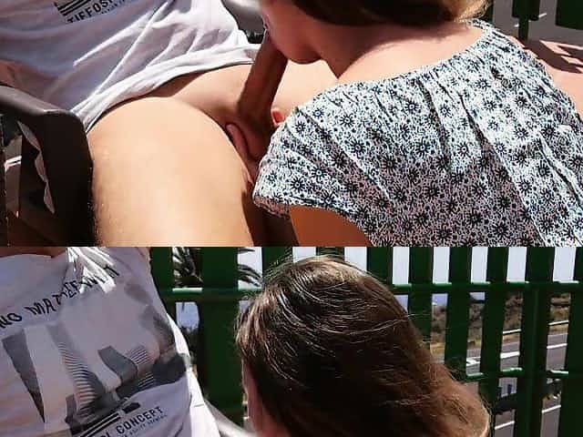 Public oral sex in the garden. Cum in throat.