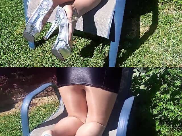 Spandex Angel - Backyard nylon tease no panties