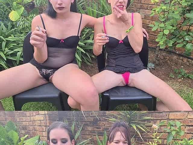 Two Garden Brunette Whores Using Each Other as Human Ashtrays