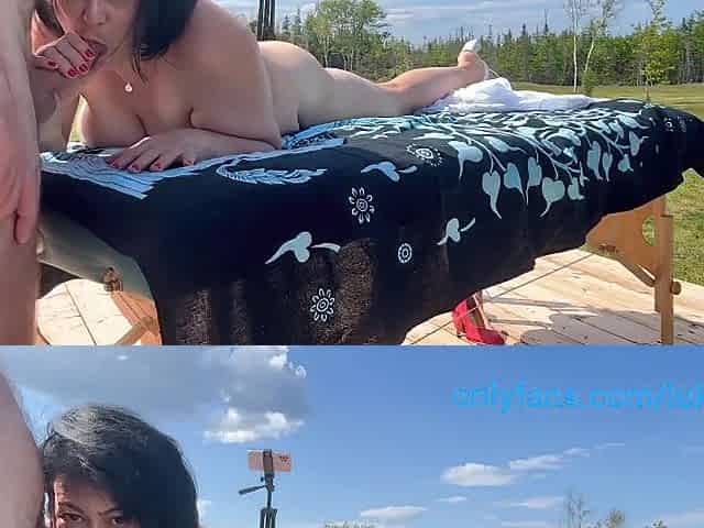 Sunbathing undressed in my backyard, my nasty spouse showed up by surprise and started to screw me and film us
