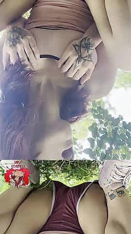 Lilu Moon teasing herself in the Mansion backyard