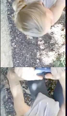 Blonde MILF's Cozy Garden Blowjob