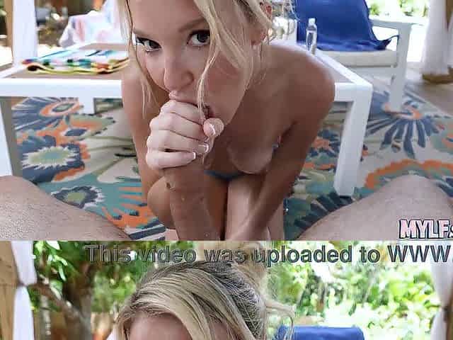 Stunning looking blonde babe with a fat ass gets fucked in the backyard