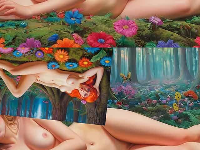 Nude Elf Girl Laying in the Colorful Garden