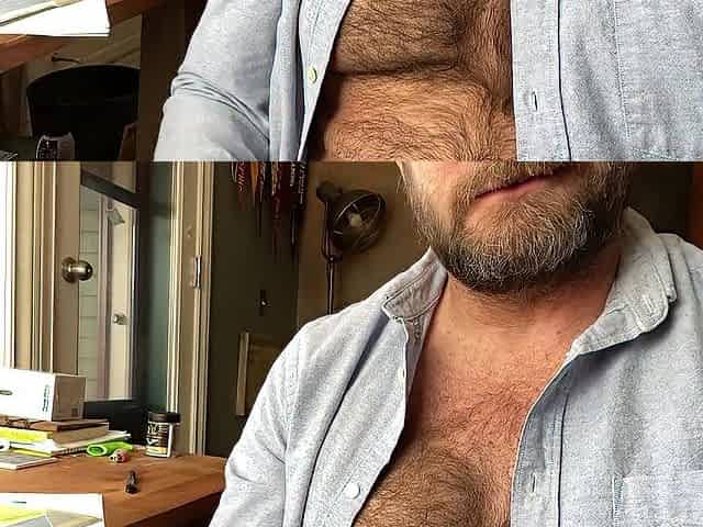 My shaggy pecs look cute when I flex 'em