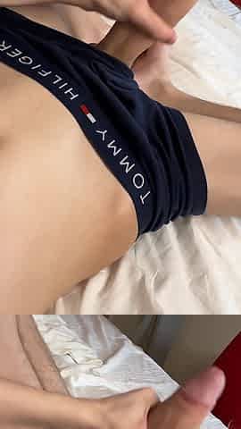 Cute twink showed his huge dick and cummed abundantly