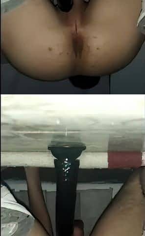 Riding 7 inch dildo at home fucking hot ass
