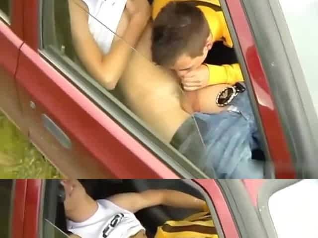 young twink sucks dick in car and swallows
