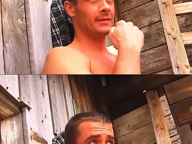 Hard bodied cowboy strokes his cock in the privacy of the barn