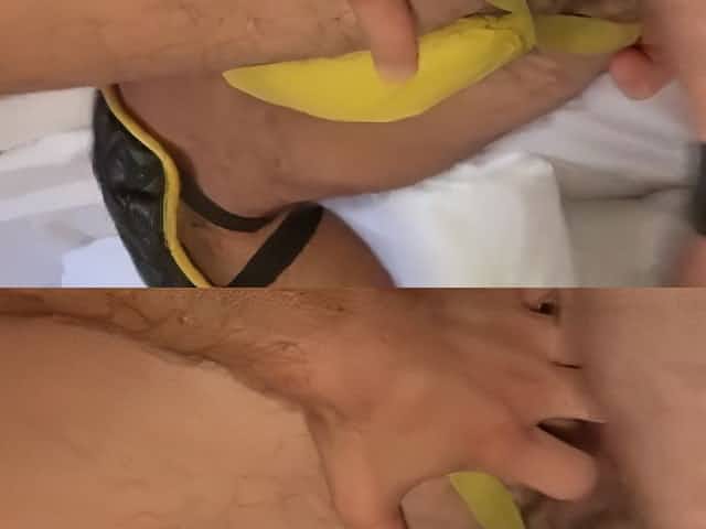Man eating own cum with food! Hair cock :-)